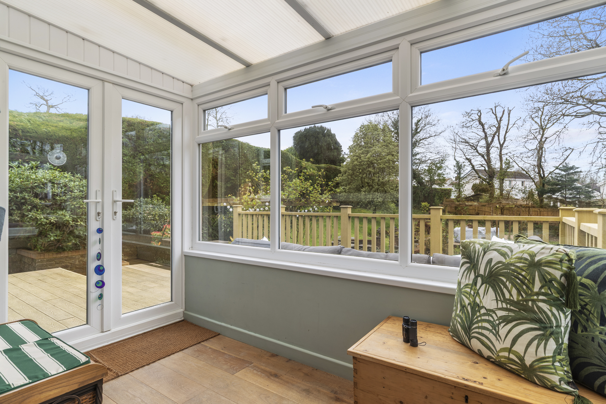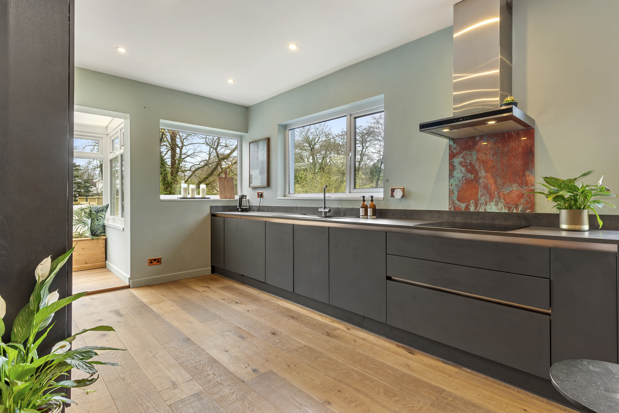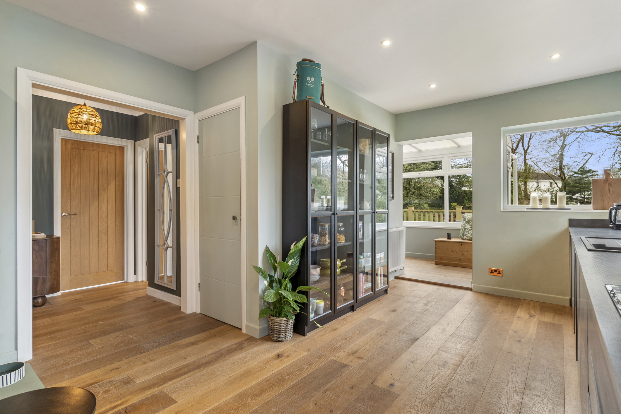 Just off the kitchen, you’ll find a conservatory-style boot room for additional space and storage space for outdoor gear and clothing, dog walking accessories and towels, with easy access leading out into the large, enclosed garden.