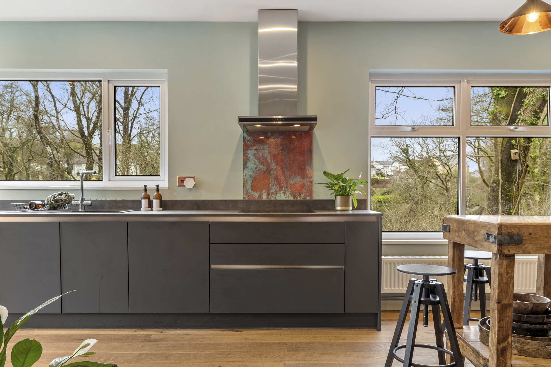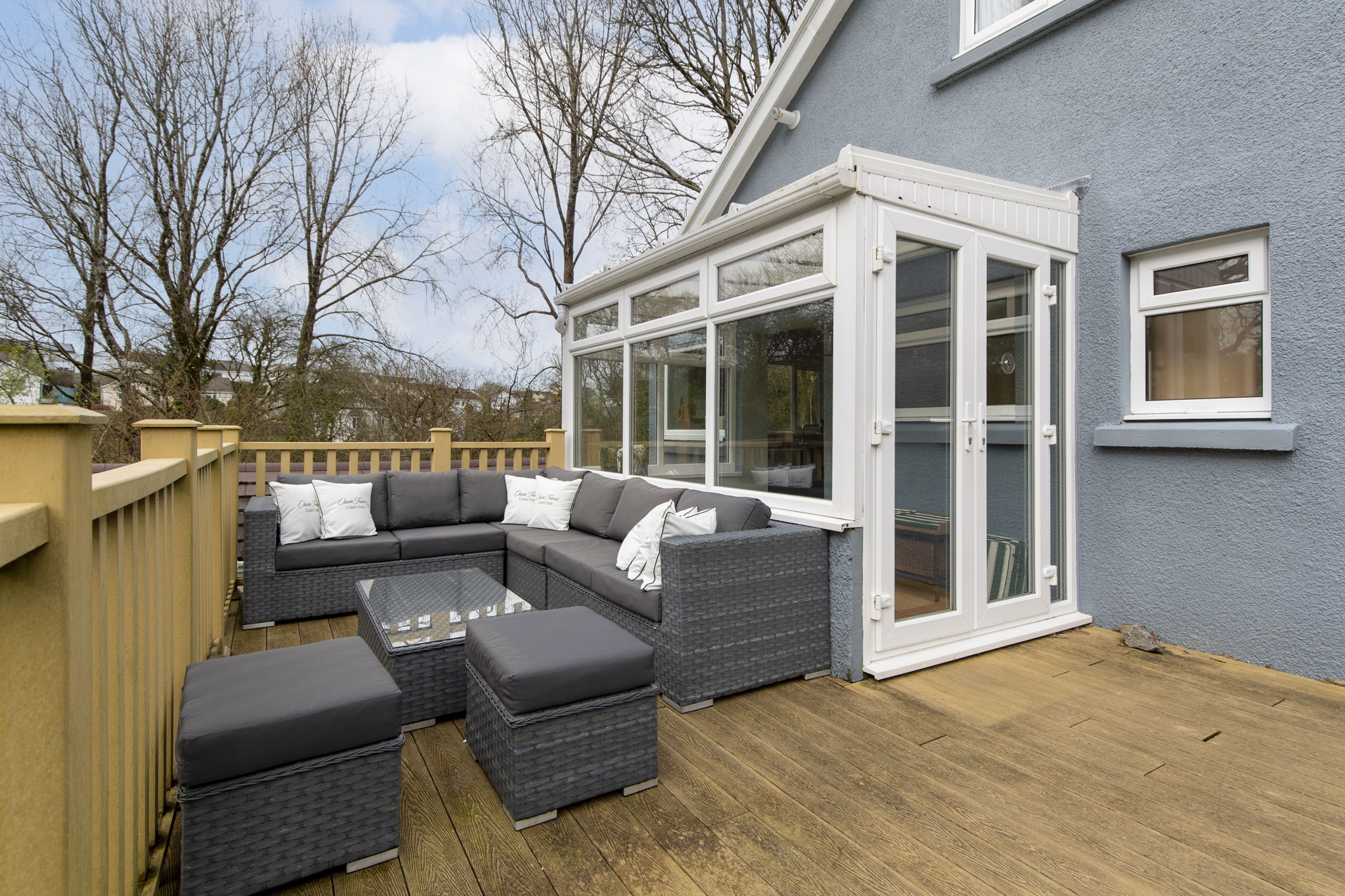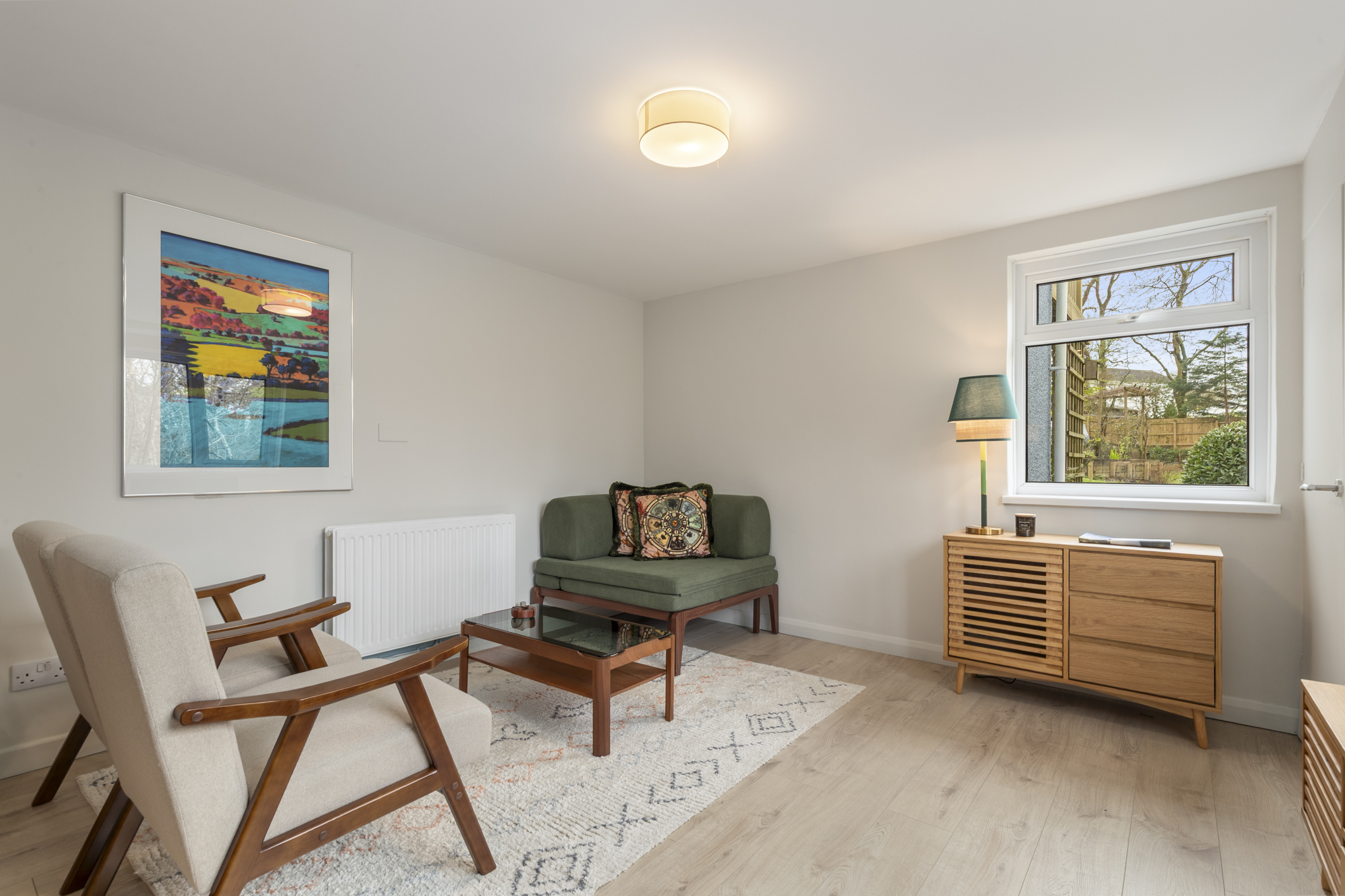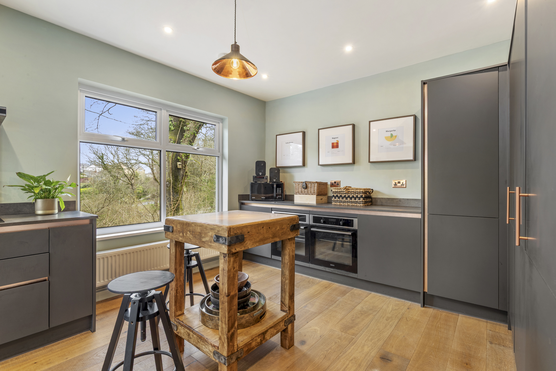 Just off the kitchen, you’ll find a conservatory-style boot room for additional space and storage space for outdoor gear and clothing, dog walking accessories and towels, with easy access leading out into the large, enclosed garden.