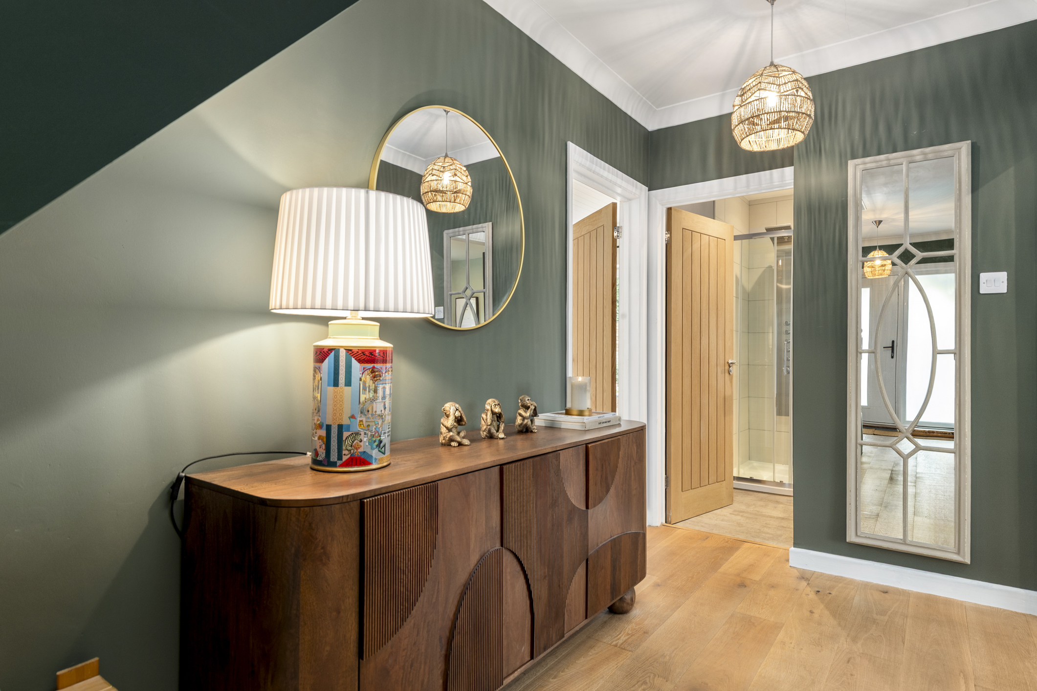 As you walk up the steps and step through the front door, you’re welcomed into a generous hallway. Perfect for kicking off flip-flops after a beach day or slipping out of walking boots after exploring the surrounding countryside. There’s ample space for coats, shoes, and all your outdoor essentials, ready for your next adventure.