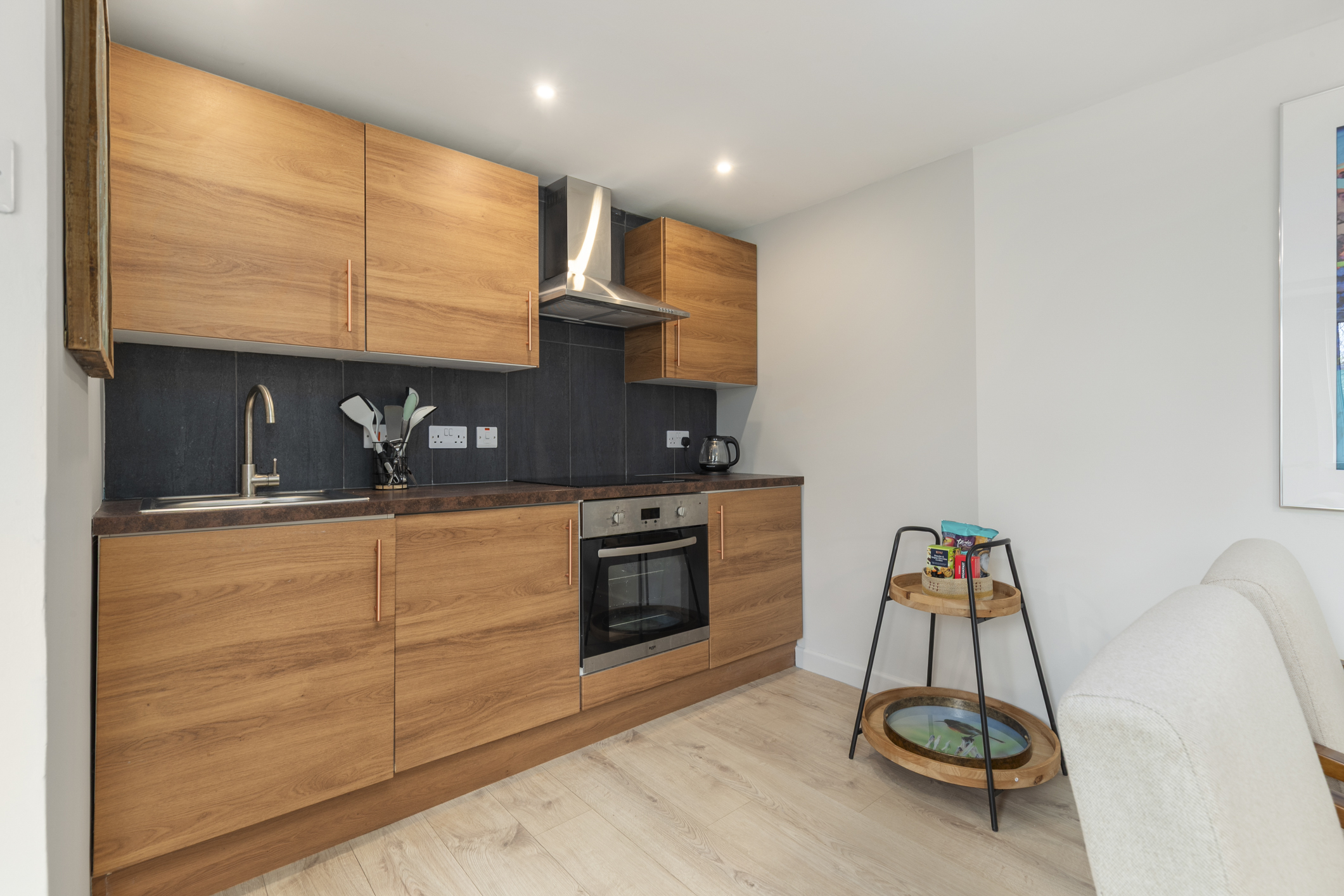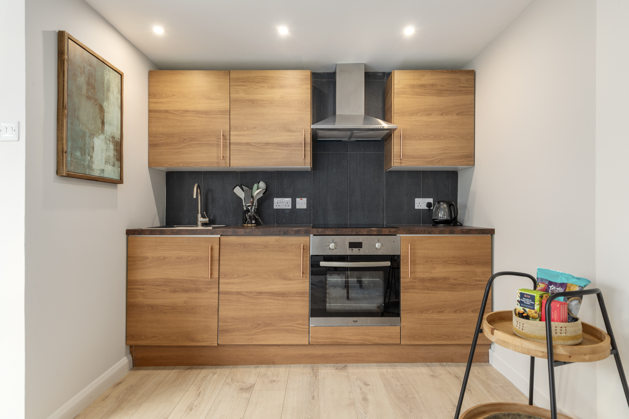 If you prefer to dine independently, the kitchen is fully equipped with its own oven, hob, kettle, and an under-counter fridge with a freezer box, along with all the crockery, utensils, and cooking equipment you may need. A foldable table and chairs for two are also available, offering a flexible and convenient dining space whenever required.