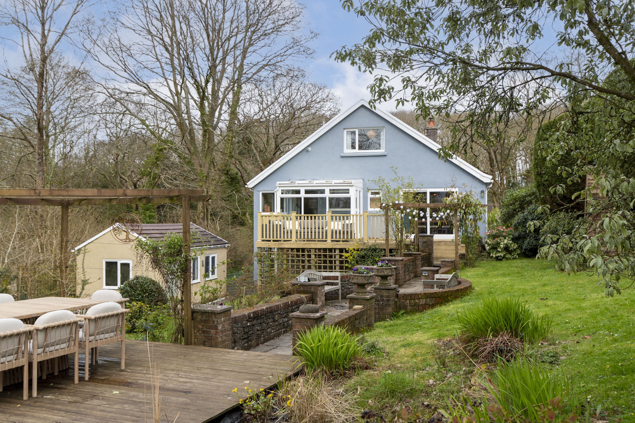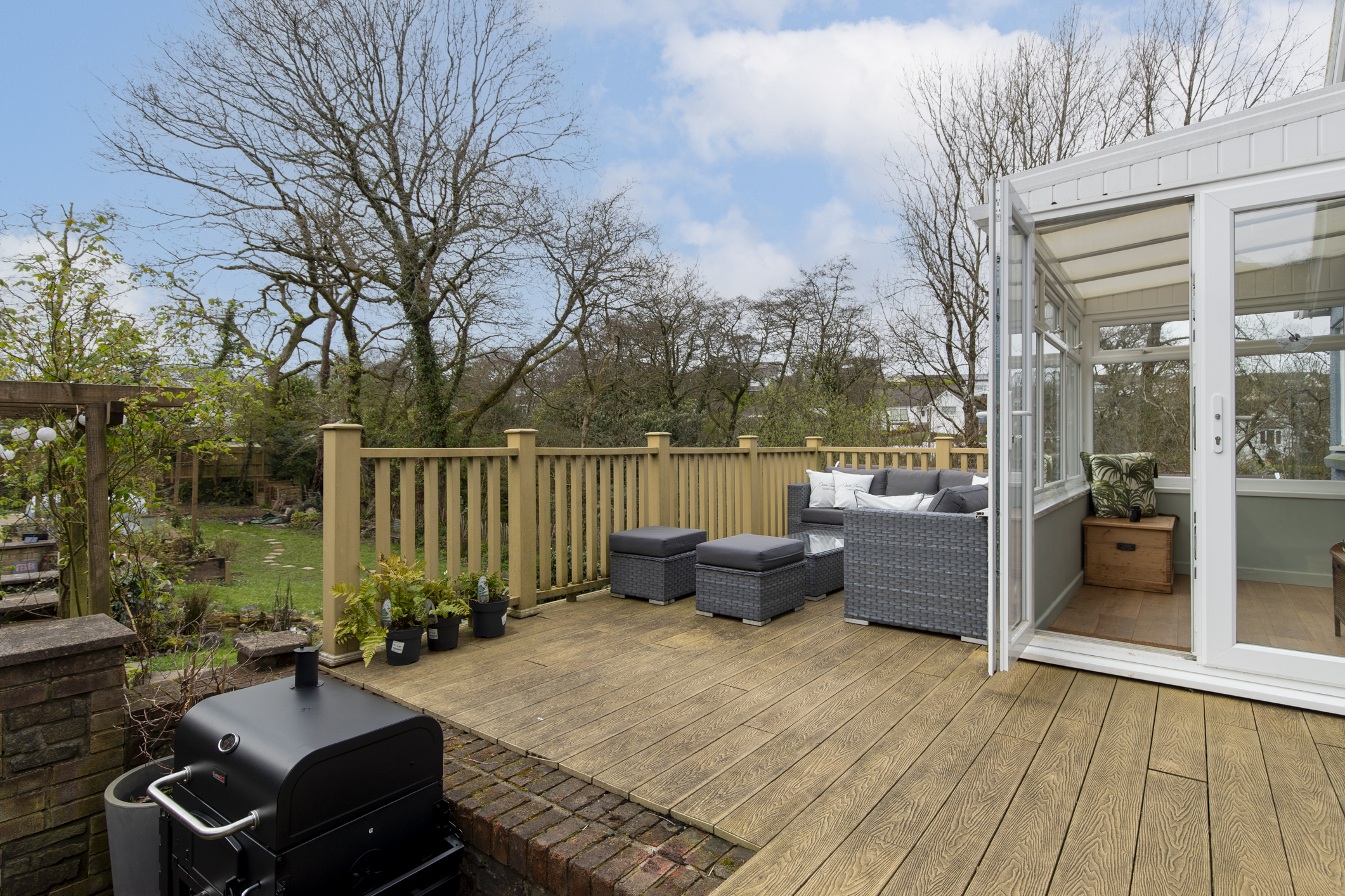 The large, well-established and scenic enclosed rear garden offers a wonderful space to relax and unwind. You can settle into cushioned garden sofa set on the decking, warm yourself by the cast iron log fire bowl, or enjoy a meal at the long wooden dining table with cushioned chairs, beautifully positioned beside the tranquil garden pond. There is still plenty of space on the lawn to play or simply relax, along with a swing hanging from a sturdy tree, adding a touch of charm and fun for all ages.