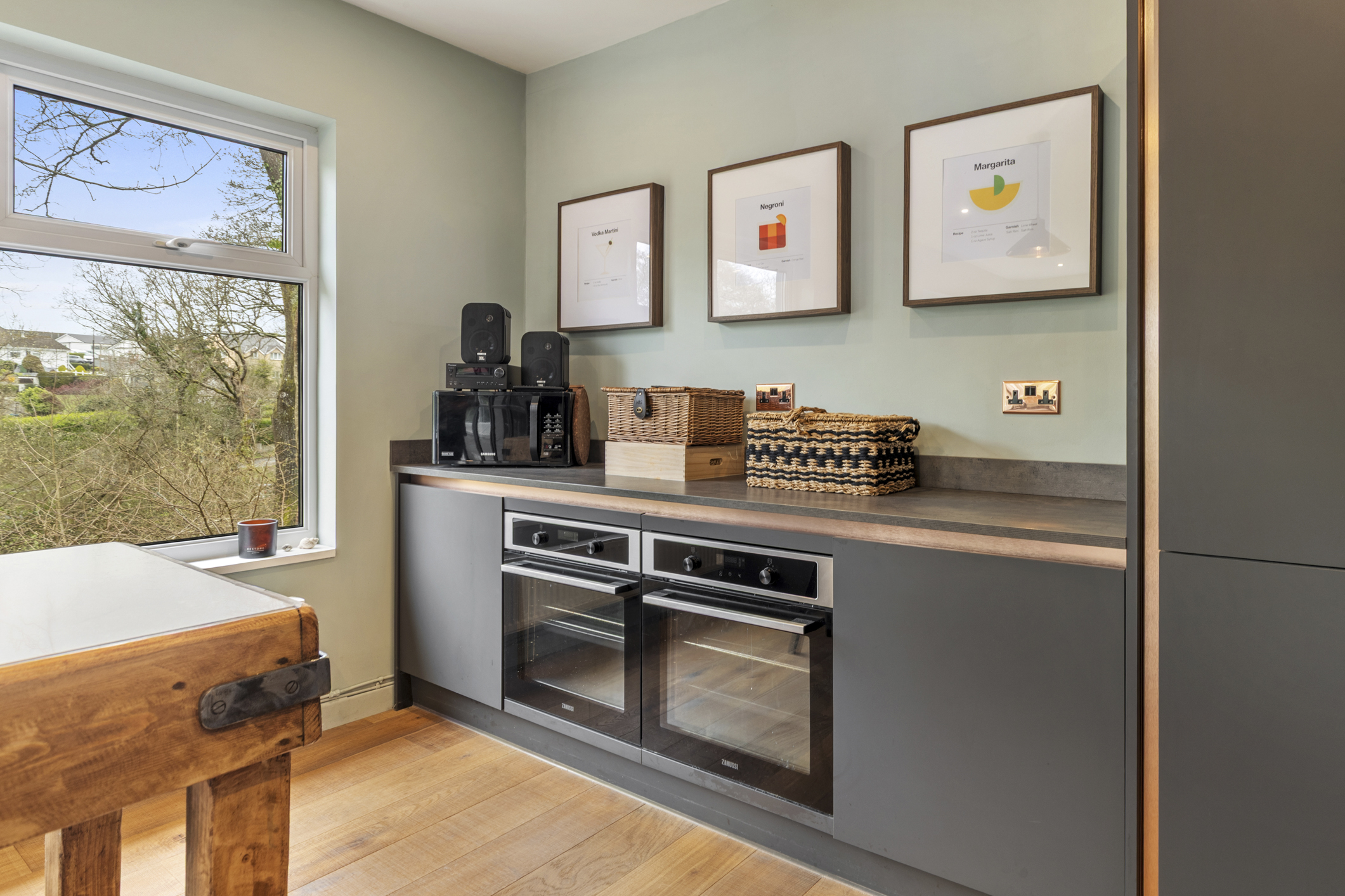 The large, well-equipped kitchen has everything you need for a self-catering holiday, including two ovens, a hob with extractor hood, a full-height separate fridge and freezer, microwave, dishwasher, and more. There’s plenty of space to prepare relaxed meals for family and friends, making it a sociable and practical heart of the home.